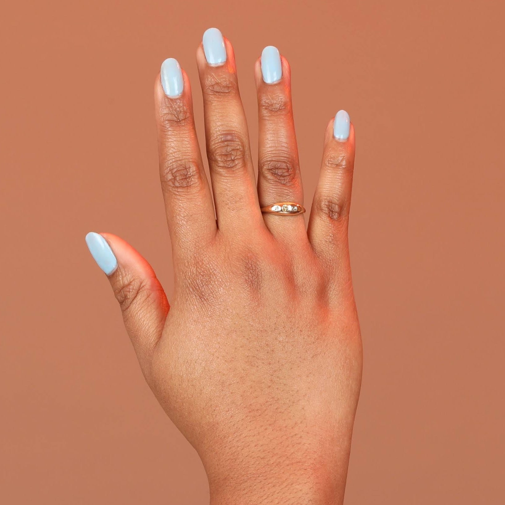 This ring is individually carved in wax and cast by hand, giving it subtle variations and organic character. The high-polish finish highlights the gold’s warmth while letting the sapphires take center stage.