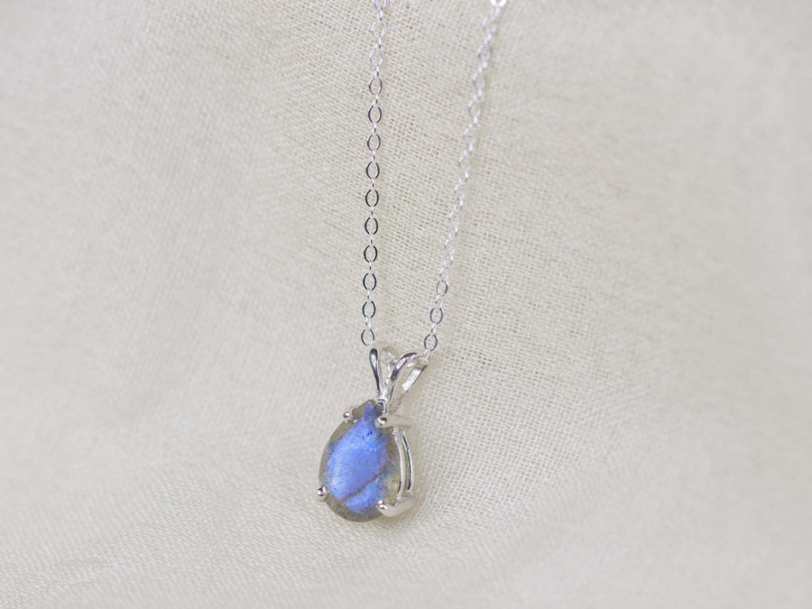 - 10mm x 7mm pear shaped faceted labradorite pendant