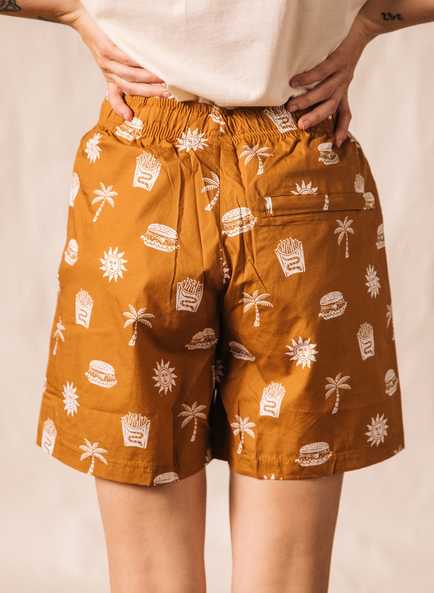 You can tell how tasty the food will be by how greasy it is. Complete with a drawstring, side pockets, and a zippered back pocket, these unisex cotton walk shorts are comfortable, roomy, and perfect for gorging on delicious, greasy food.