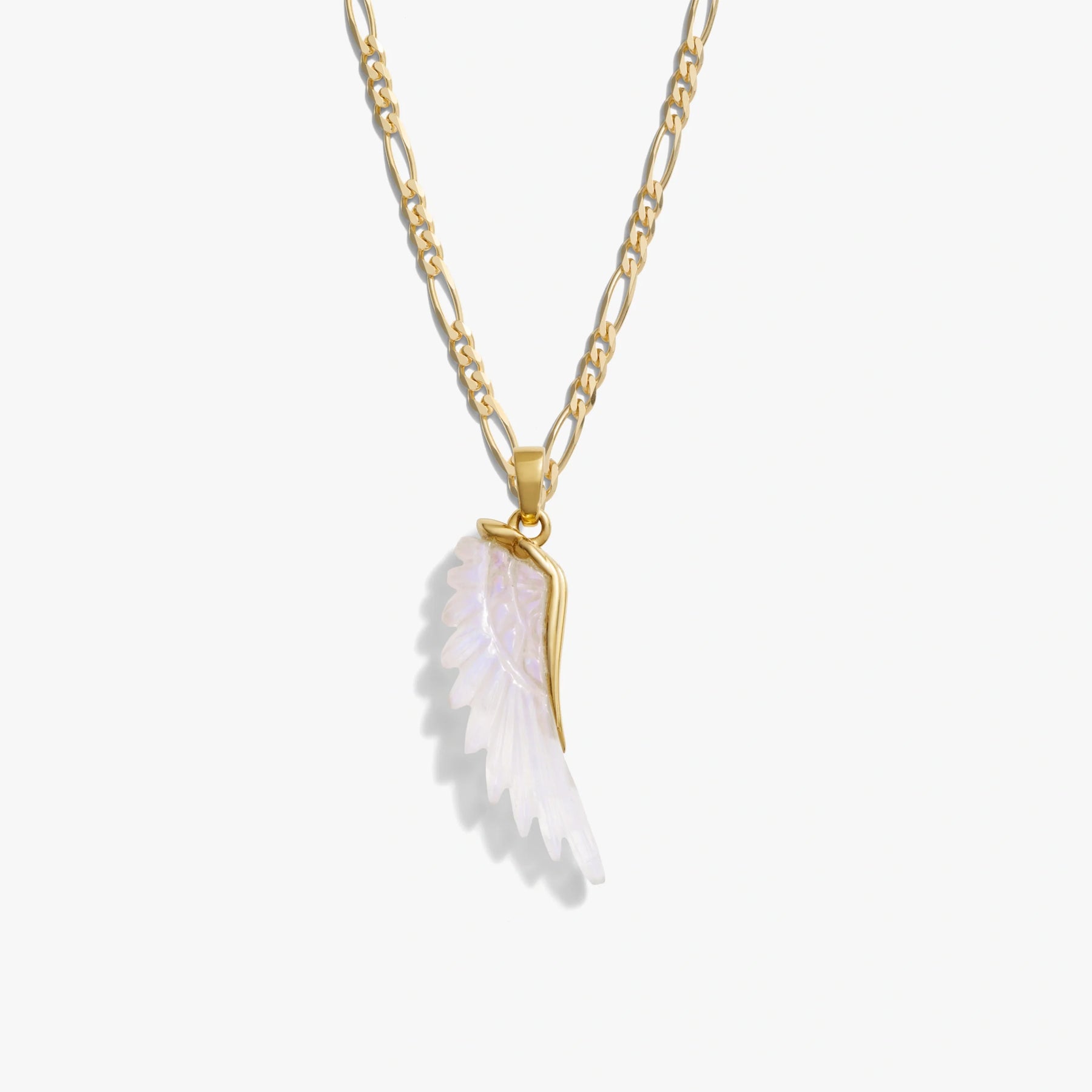 Awaken in the light of transformation and divine inspiration. Meticulously hand-carved from labradorite or crystal quartz, each angel wing amulet has its own delicate curve, following the natural lines of the gemstone. No two are alike. A fitting reminder of your own unique gifts and divine power.