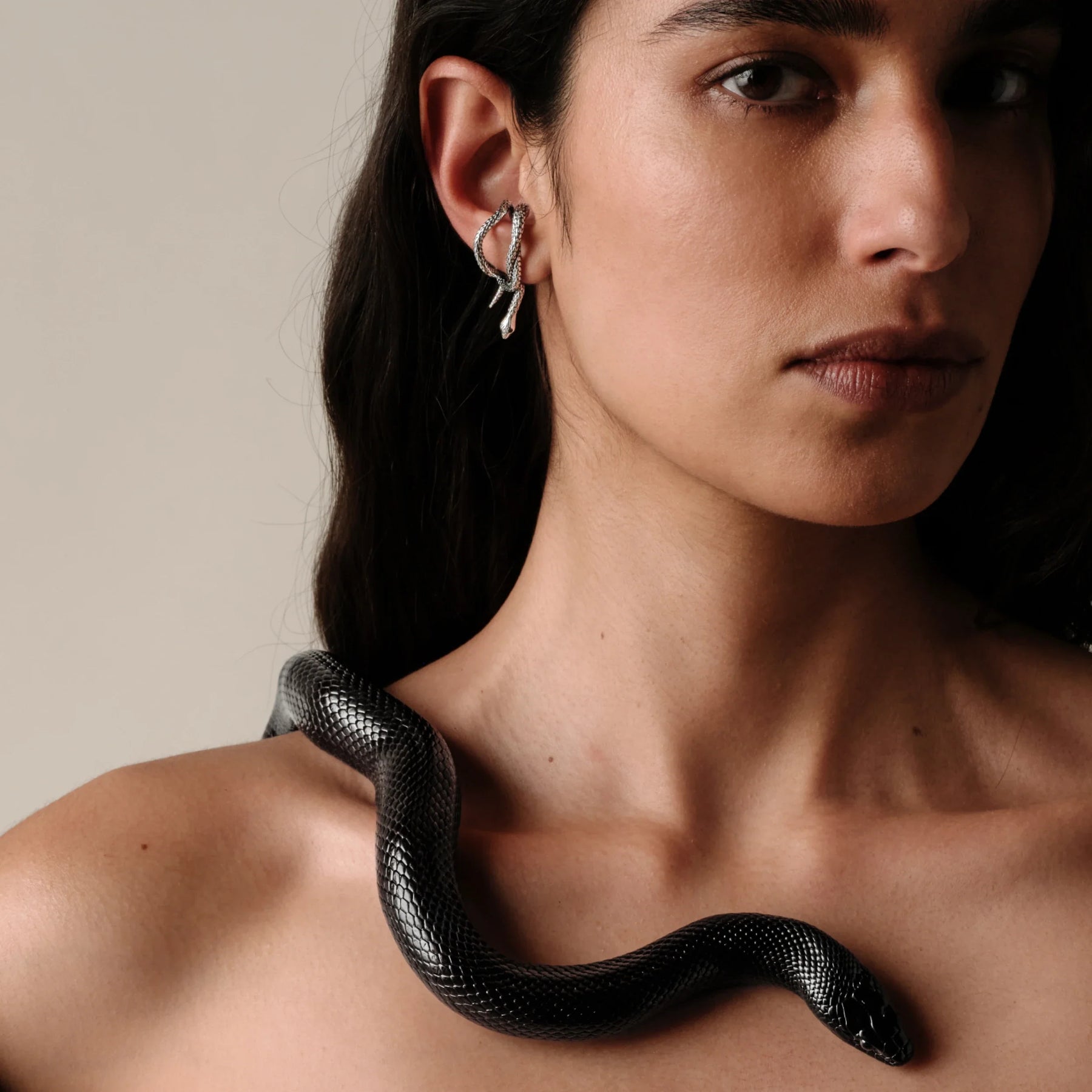 Protective. Transformative. Enduring. The snake is one of the most ancient jewelry motifs known to history, and continues to transcend today for its rich symbolic power. Its iconography has long been favored by royalty, ranging from ancient Egypt to Victorian England. Drape the Snake Wrap Earring from your ear to invoke the snake's endless capacity to shed what no longer serves, and be reborn anew. Your own personal transformation awaits.