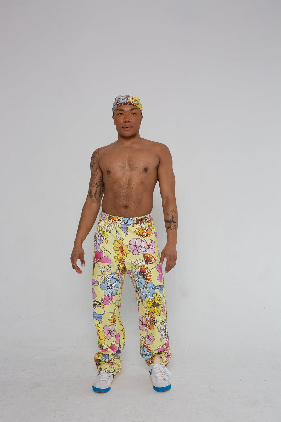 Our signature pants are designed to be unisex and to fit a range of bodies. Please reference the dimensions below to verify your size.To help minimize waste, the print layout will vary for each item.