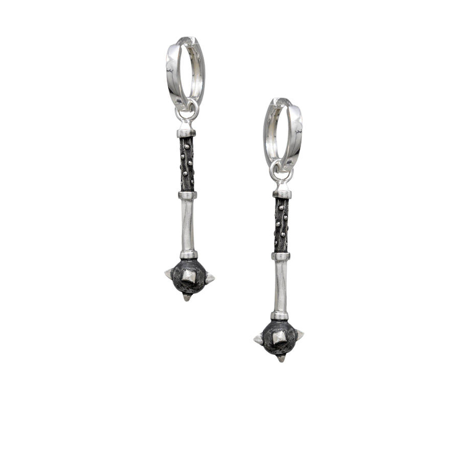 Our signature Armory Collection weaponry charms on a simple and sleek huggie earring. These huggies layer beautifully with other earrings, and can hold any of our house-made charms.