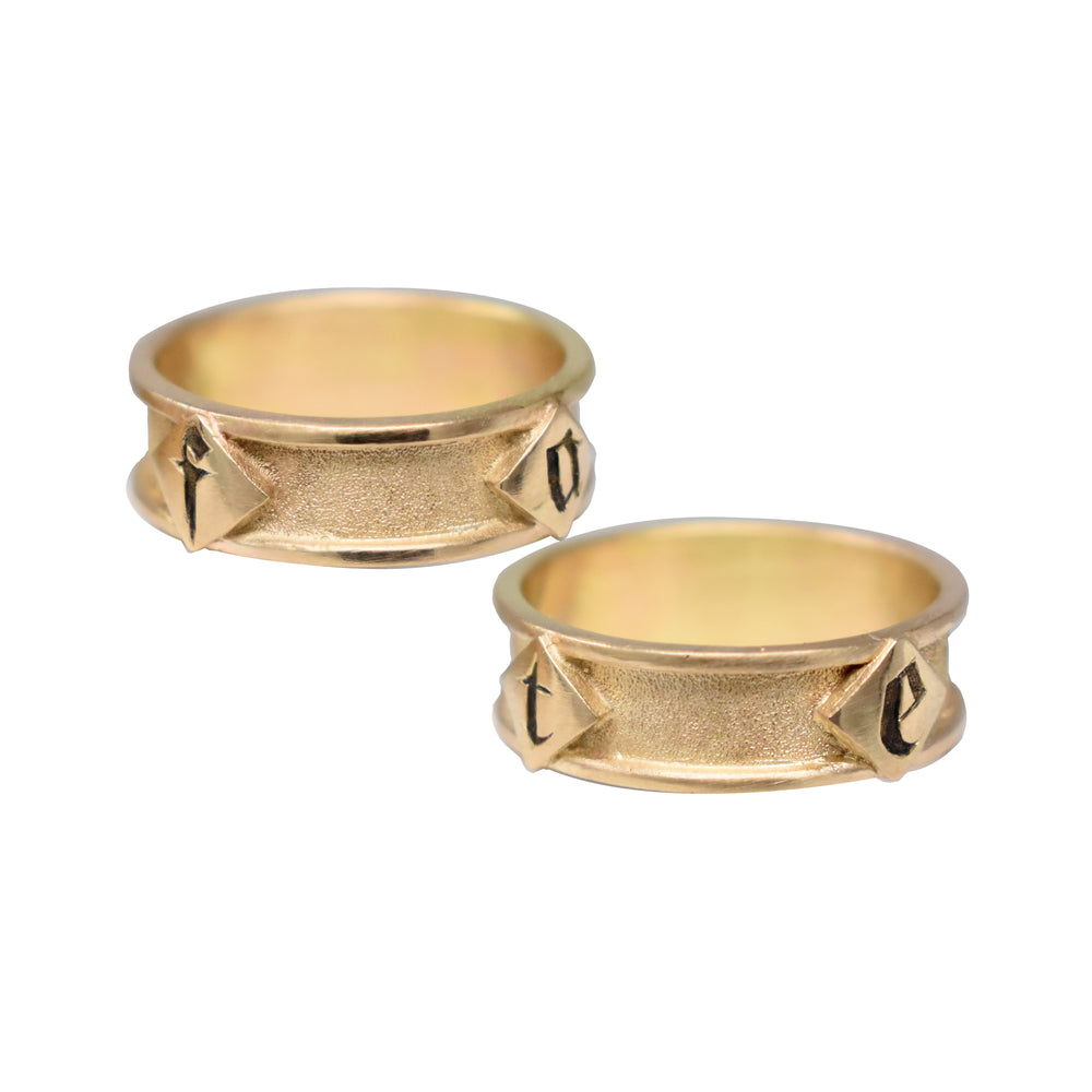 Introducing the Motto Ring Band—a ring where medieval opulence meets modern wit.