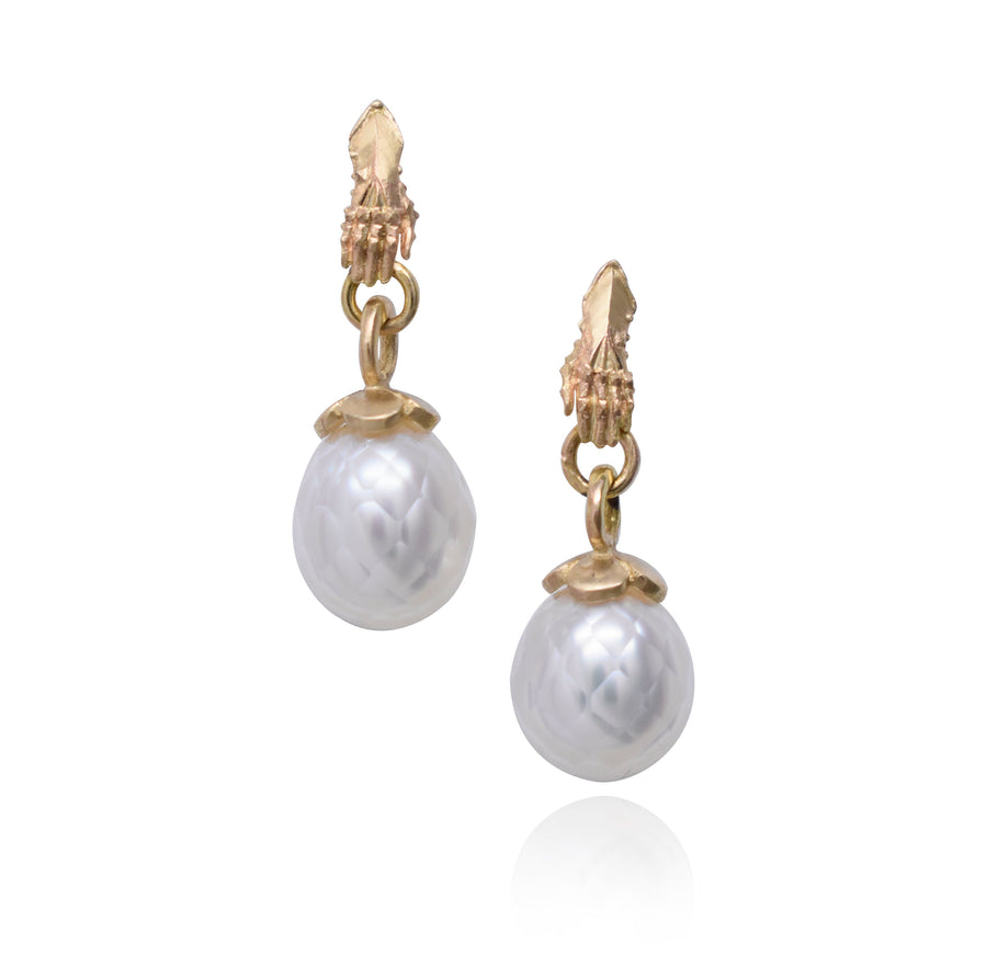 Treasury Earrings with Faceted White Pearls