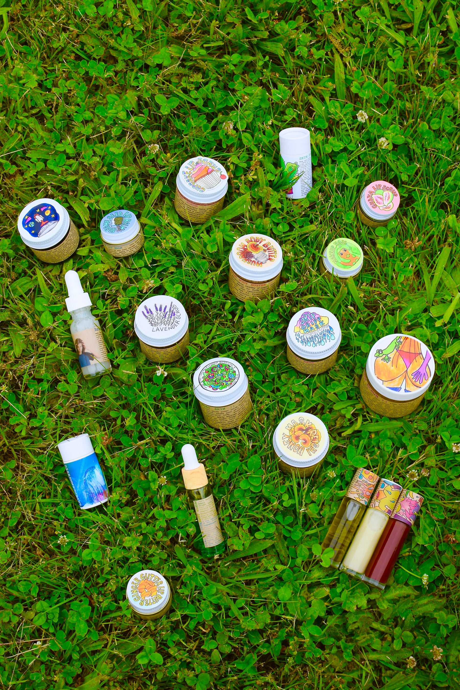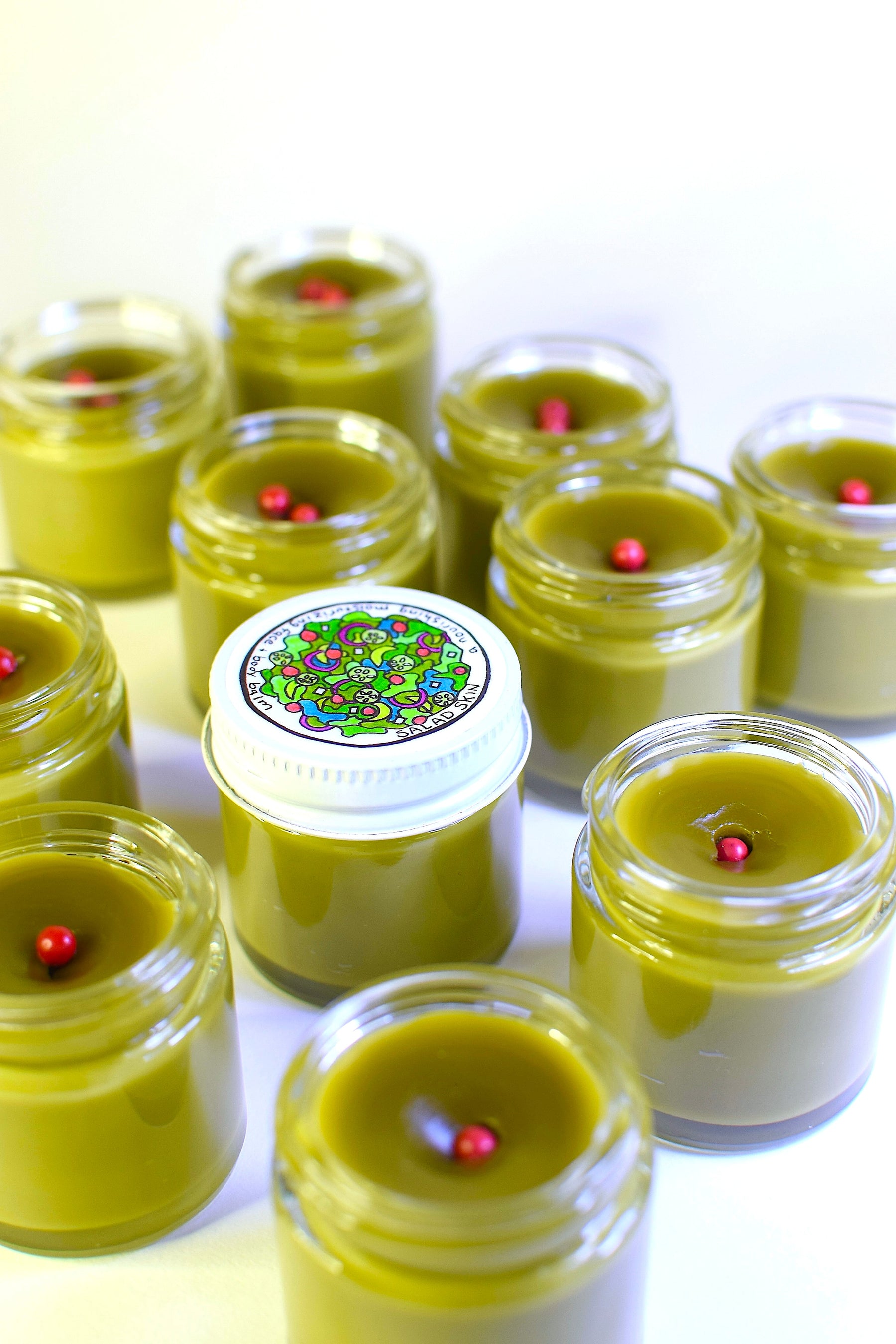 Ingredients: cold pressed grapeseed oil* (Vitis vinifera), extra virgin olive oil* (Olea europaea), cold pressed unrefined hemp seed oil* (Cannabis sativa), cold pressed unrefined pumpkin seed oil* (Cucurbita pepo), rice bran wax* (Oryza sativa), alfalfa leaves* (Medicago sativa), nettle leaves* (Urtica dioica), matcha tea* (Camellia sinensis), wheatgrass* (Triticum aestivum), spirulina* (Arthrospira platensis), pineapple mint leaves+ (Mentha suaveolens), Irish moss* (Chondrus crispus), green tea leaves* (Camellia sinensis), a pink pepper corn* or two (Schinus terebinthifolius) + love. *purveyed certified organic ingredients +homegrown