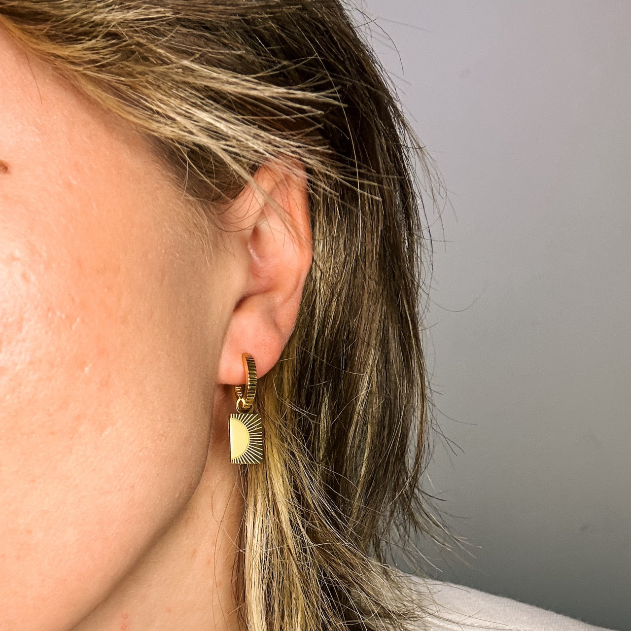 This charm is styled on our Rounded Rectangle 23mm Huggies (Gold) and Circle Rounded 23mm Huggies (Silver).