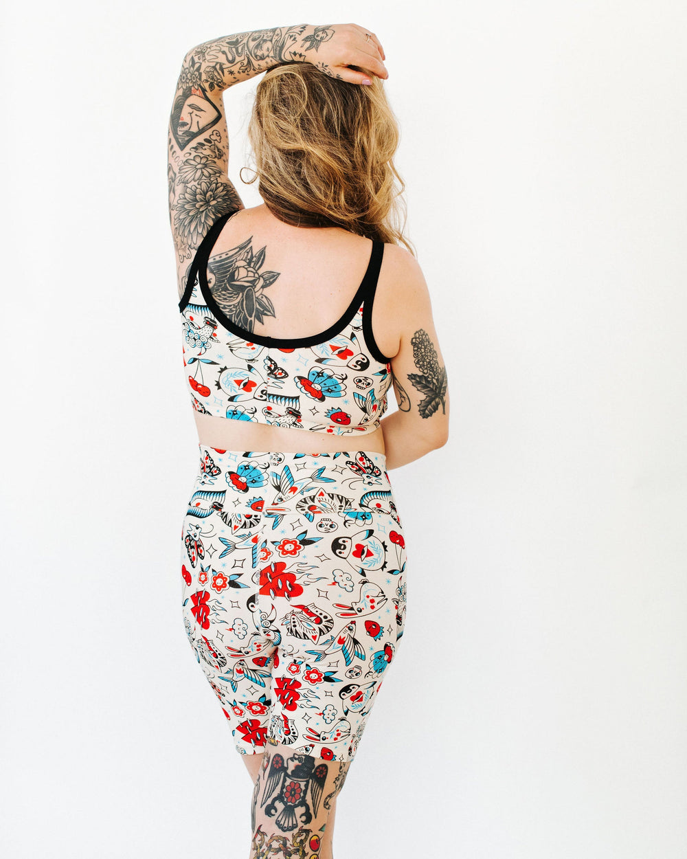 This ink-redible print is illustrated by local tattoo artist Connie Gabbert. Her work is a perfect mix of whimsy and traditional style, and every one of these adorable characters pops to life. We wanted to cover our whole bodies with her tattoos, so we thought, what’s better than covering thundies with them? Now you can be inked up whenever you want!