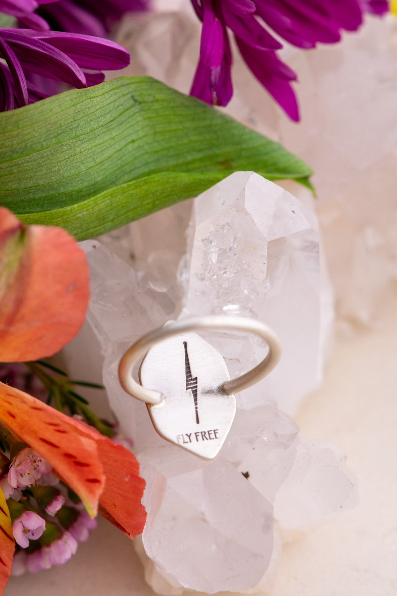 In inside light this stone looks like a dark navy color. The sunlight brings out the best of it. Inclusions in the stone pick up the sunbeams and wink like stars