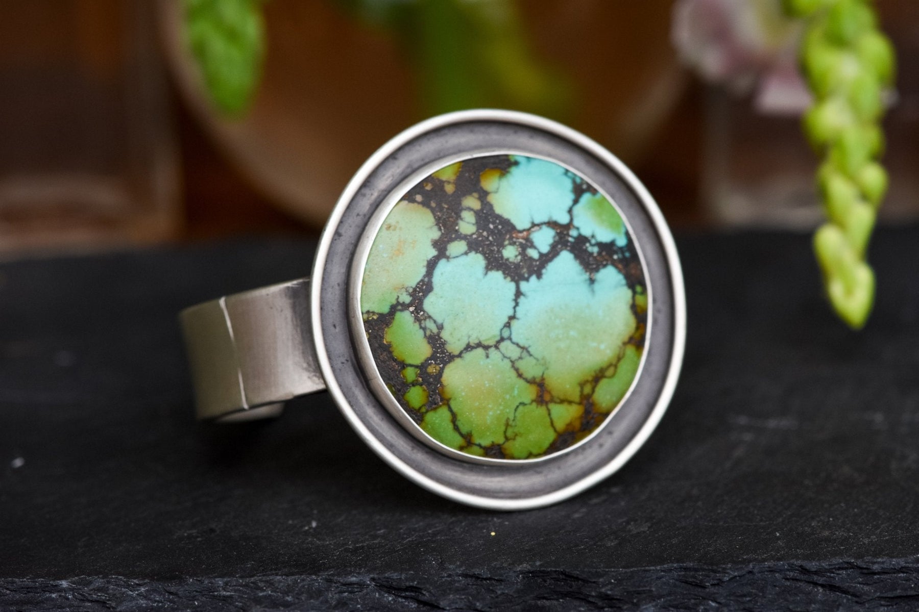 This piece of turquoise is a world in a stone. It is the most powerful piece I have ever made, due to this absolute unit of turquoise. This is no doublet, a solid piece through and through.