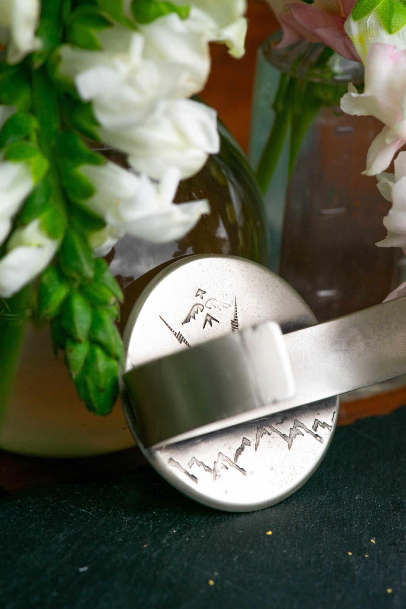 I used a thick heavy piece of silver for the cuff part. For medium/large wrists gently adjustable by slowly squeezing the cuff from the sides and the top once it is on your wrist.