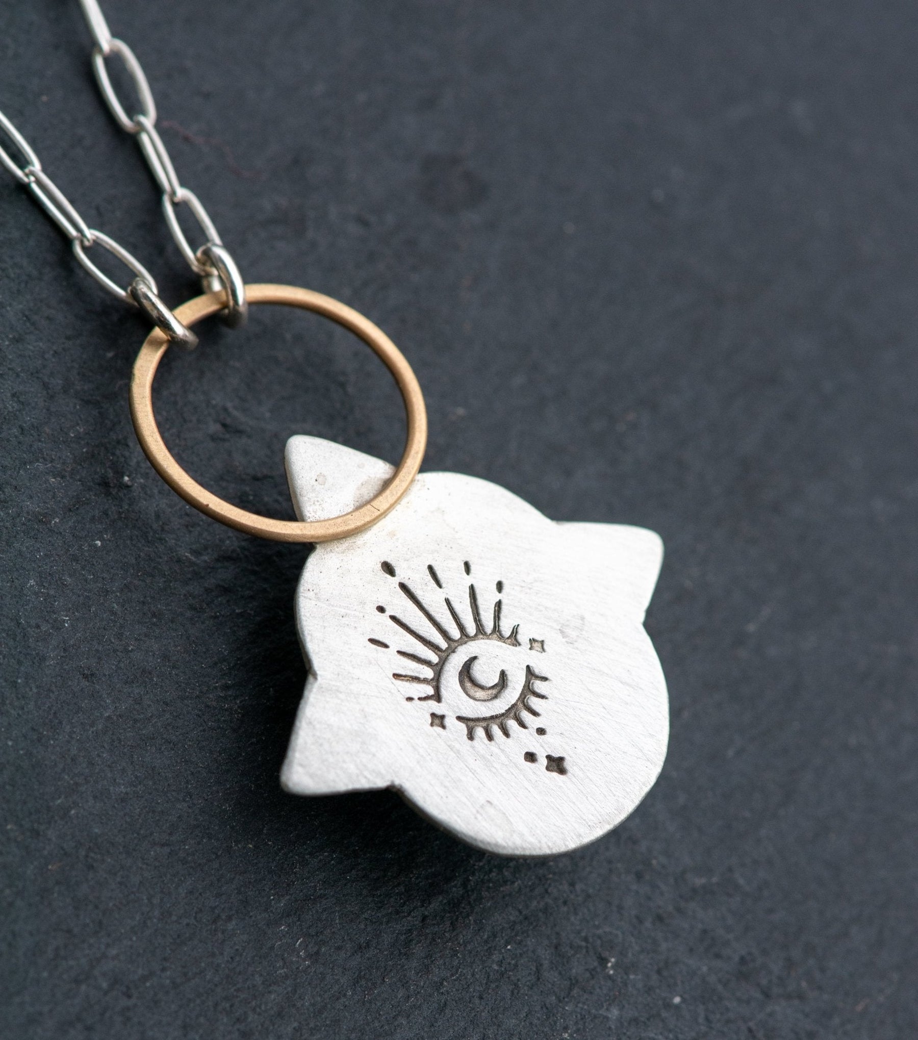 This is a protection amulet. I don't know where this knowledge came from, but once it hit me, I stopped all my other projects to make this before I lost the vision. The lines on the frame are for direction and connection to the elements. The eye is for our intuition. The bright blue of the aquamarine is wise.