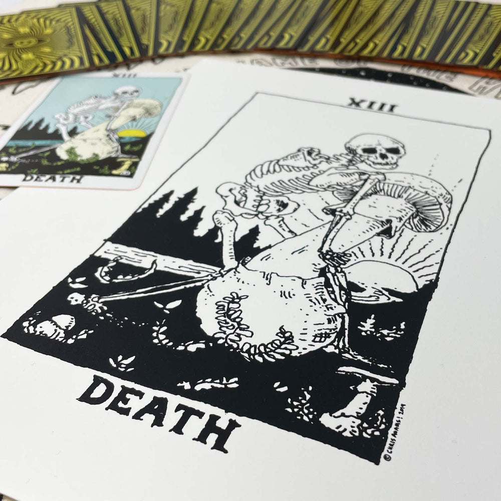 - The Cards are approximately 2.75" x 4.75" with identical backs, printed with the highest-quality inks on durable card-stock, finished with a matte UV varnish and illuminated with labradorite blue gilded edges.