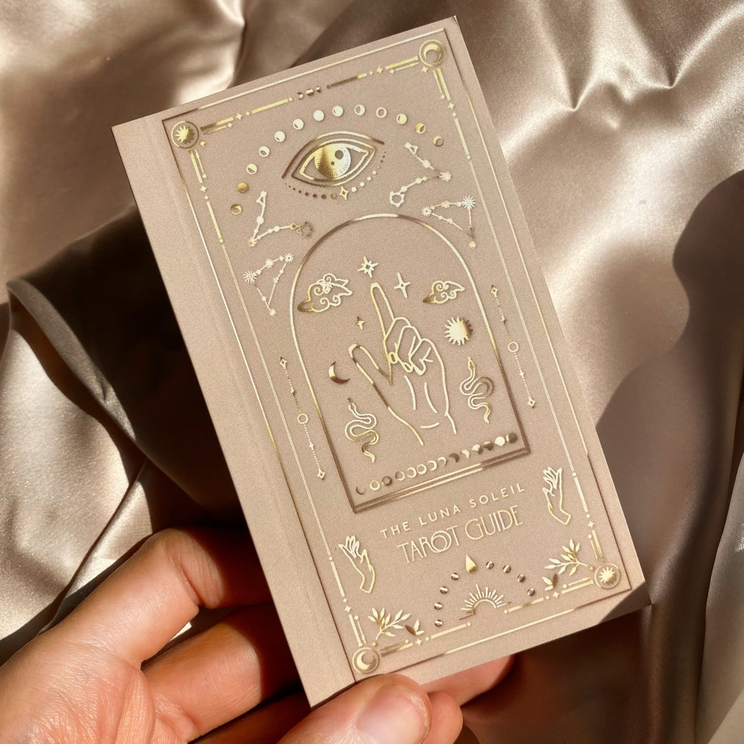 Our complete, pocket-sized tarot guidebooks are brimming with intention and guidance. This guidebook matches the Luna Soleil Tarot Deck in Sand.