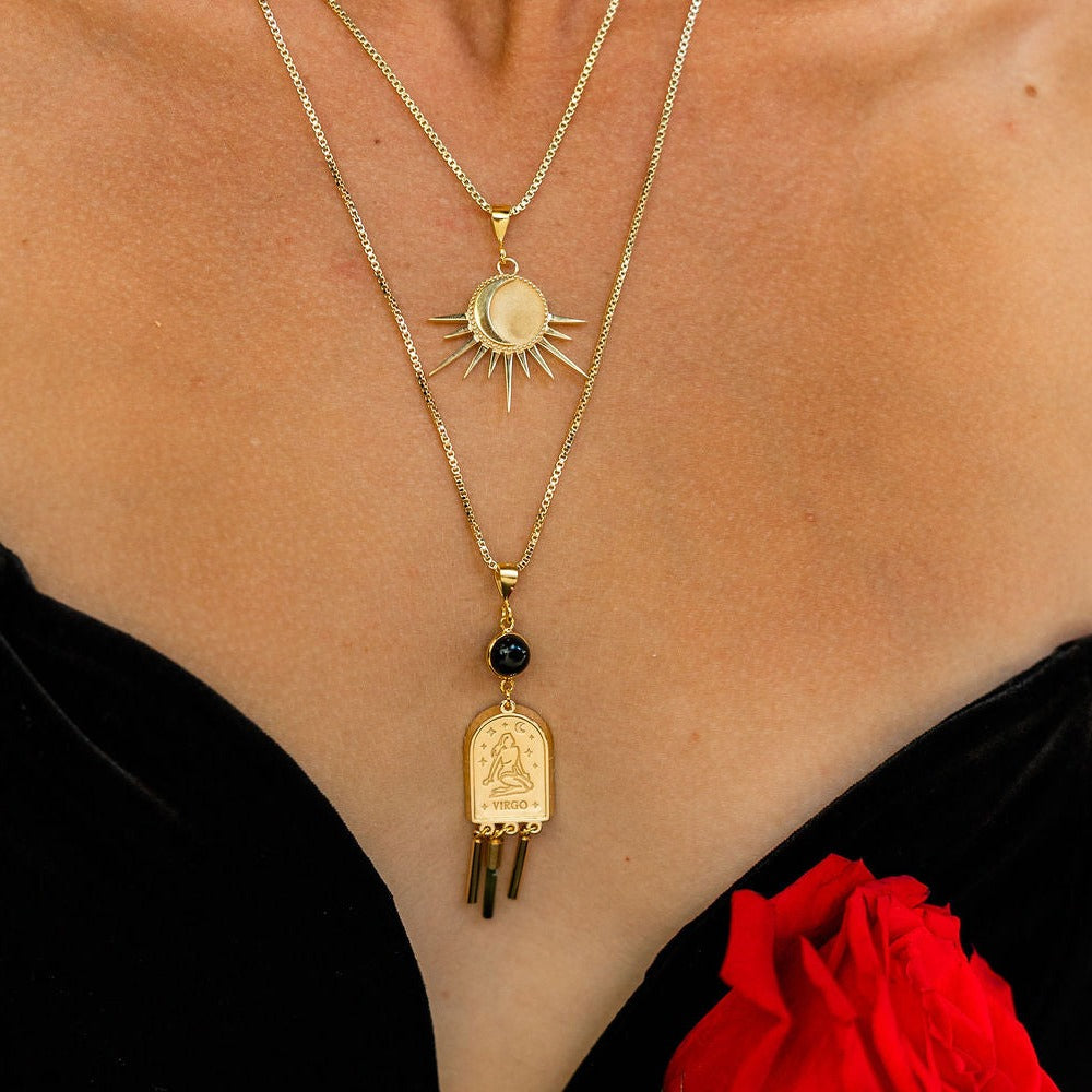 The Lunar Ray Necklace Charm within the Selene Collection draws inspiration from the radiant sun's rays and the graceful waning crescent moon with it's profound energy of gratitude. This necklace is a reflection of the sun's illuminating light and the moon's guiding influence.