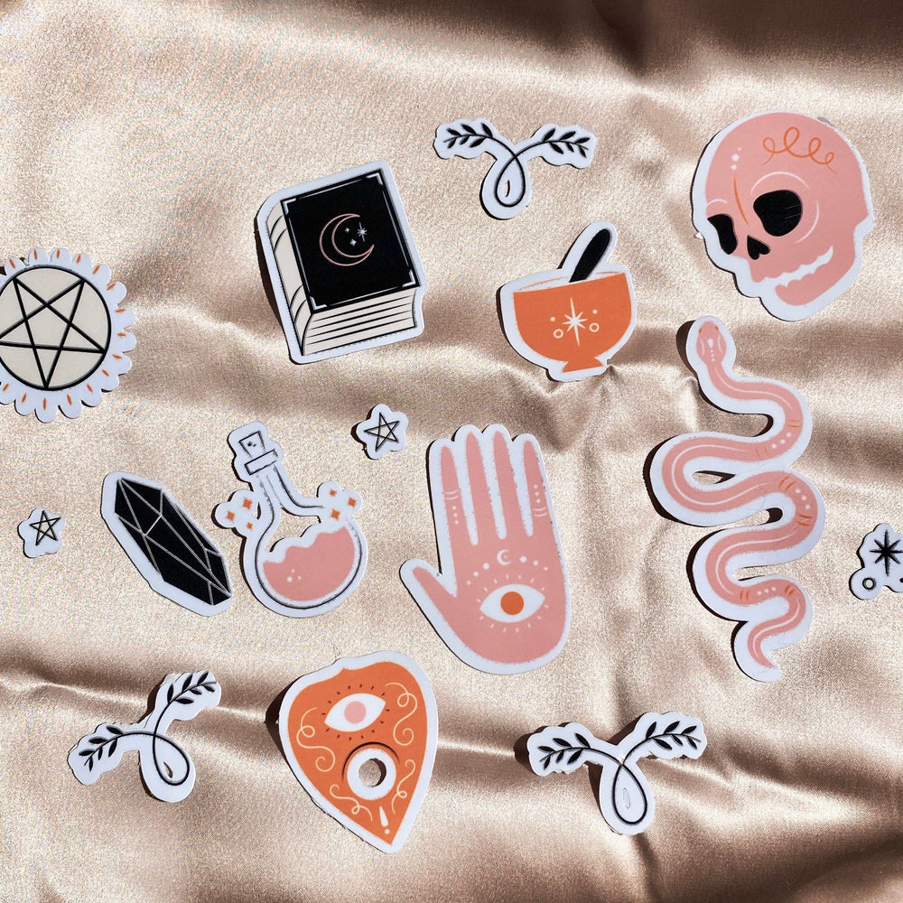 Our new collection of eye-catching vinyl stickers will bring a touch of magic into your life. Our handcrafted decals can be used on laptops, water bottles, etc. Each sticker is handmade in our studio.
