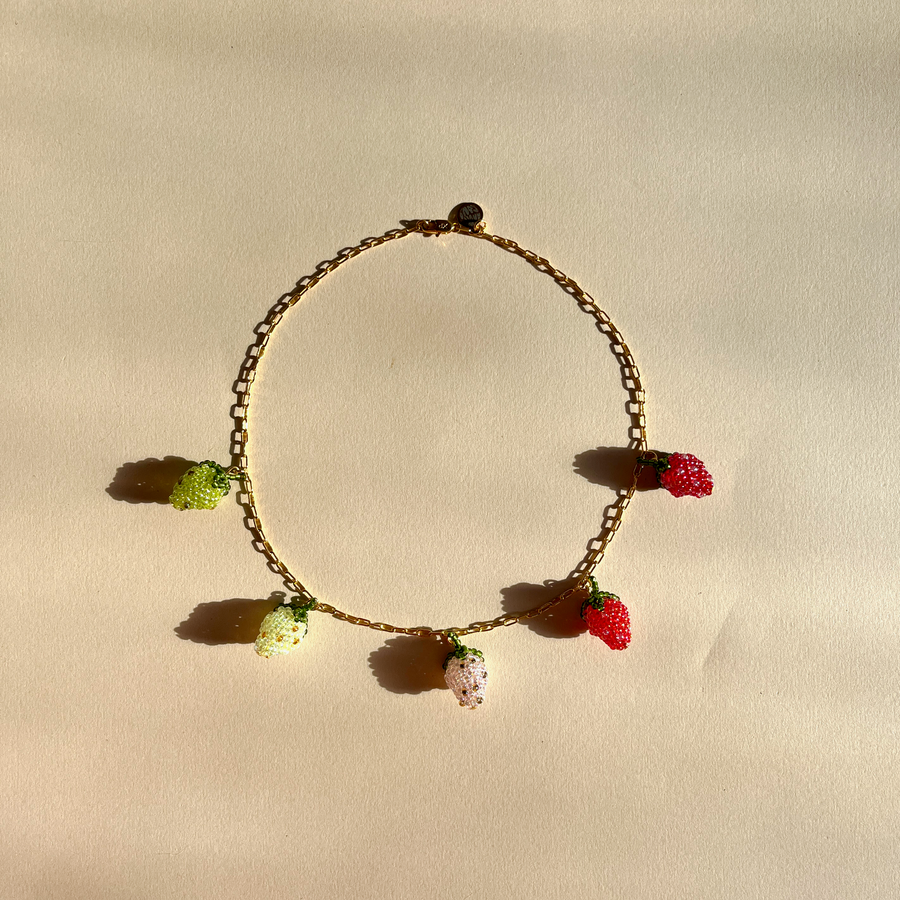 COMPOSITION- handwoven glass bead pendants on 24k gold filled chain