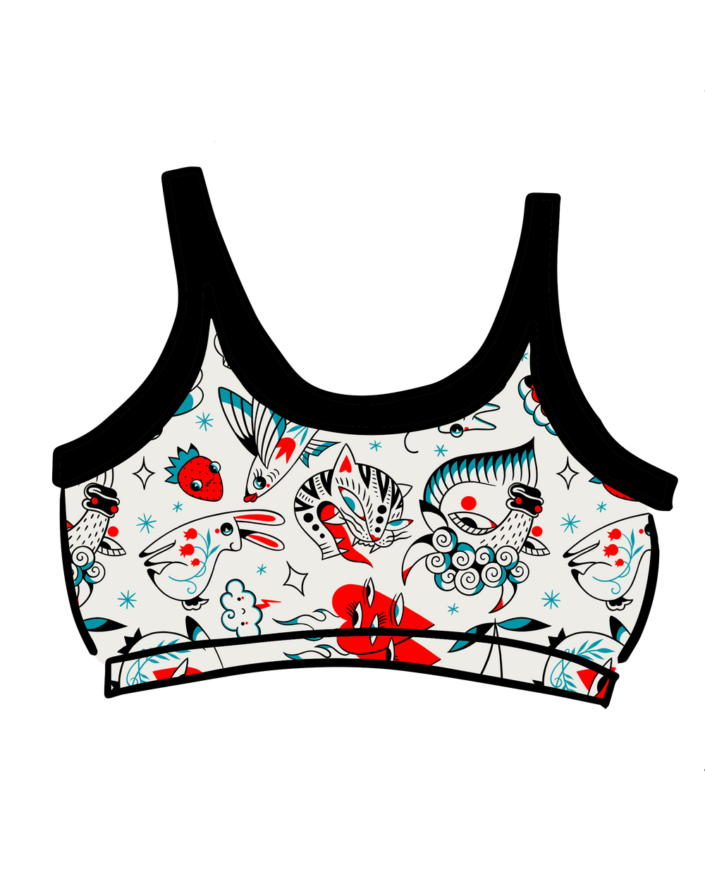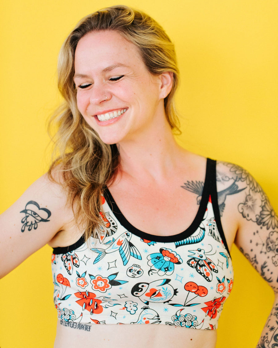 This ink-redible print is illustrated by local tattoo artist Connie Gabbert. Her work is a perfect mix of whimsy and traditional style, and every one of these adorable characters pops to life. We wanted to cover our whole bodies with her tattoos, so we thought, what’s better than covering thundies with them? Now you can be inked up whenever you want!