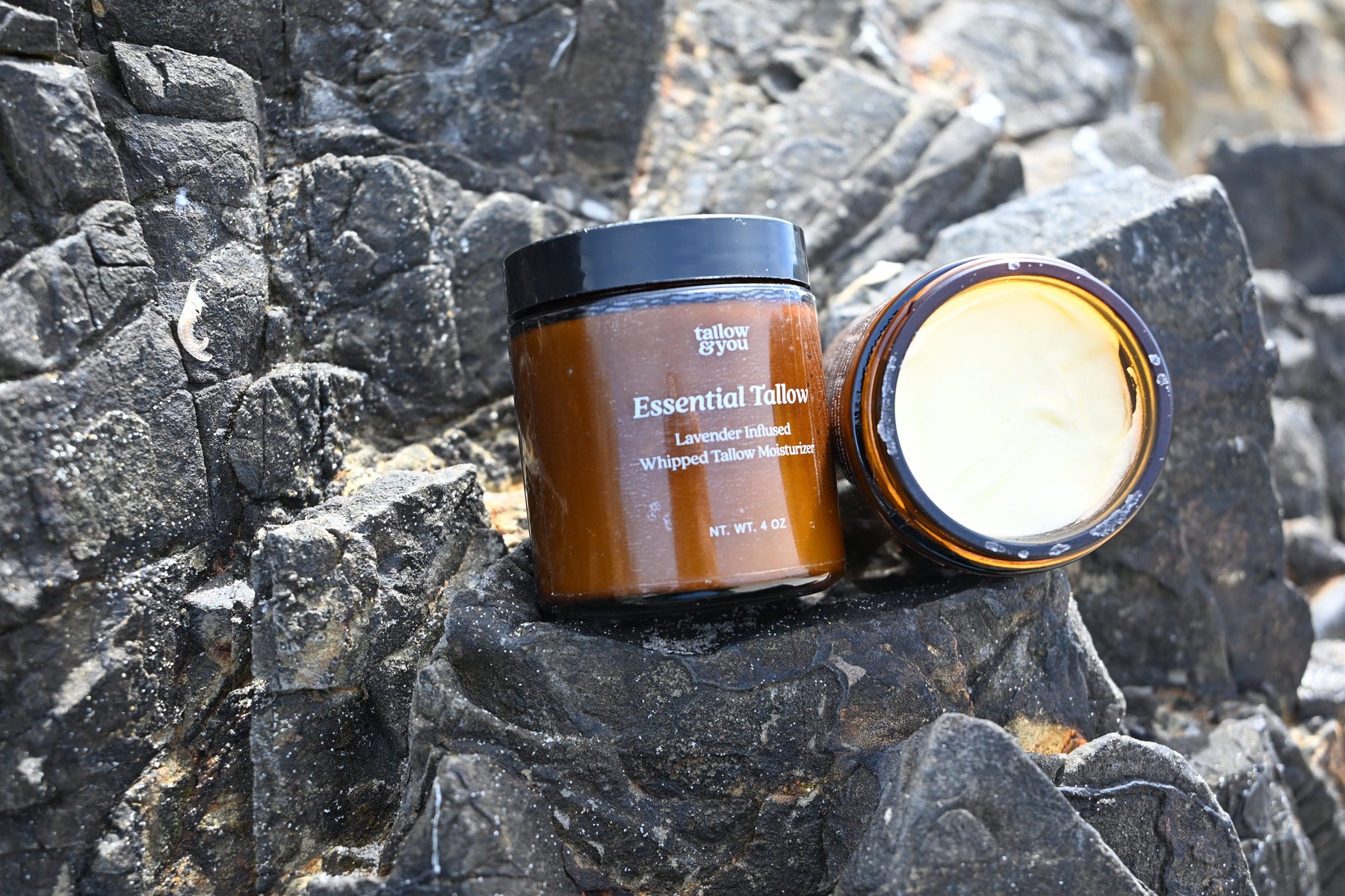 Ingredients: This formula contains 100% grass-fed and finished beef tallow, including vitamins A, E, D, K, B12, omega fatty acids, palmitic, ascorbic and stearic acid, infused lavender in jojoba oil.