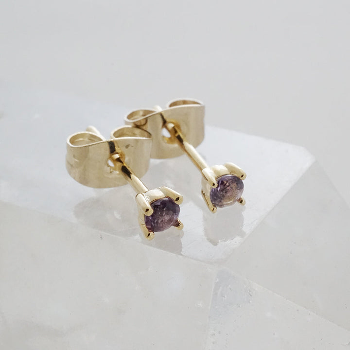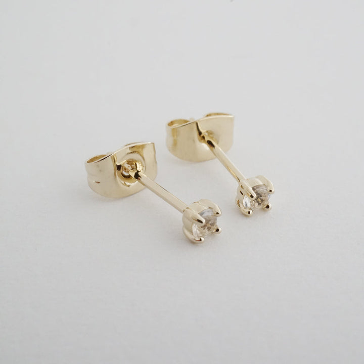 Tiny natural, studs in your choice of birthstone set in a 4 pronged bezel cup. Dainty, understated, and easy to style and wear. Wear them solo or stack these mixed and matched alongside your favorite hoops or studs.