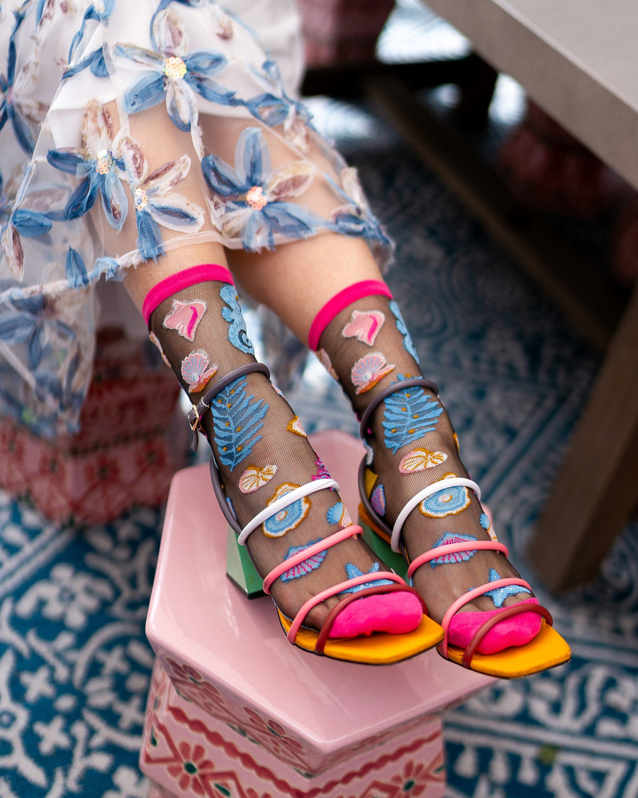 Under the Sea Black Sheer Crew Sock