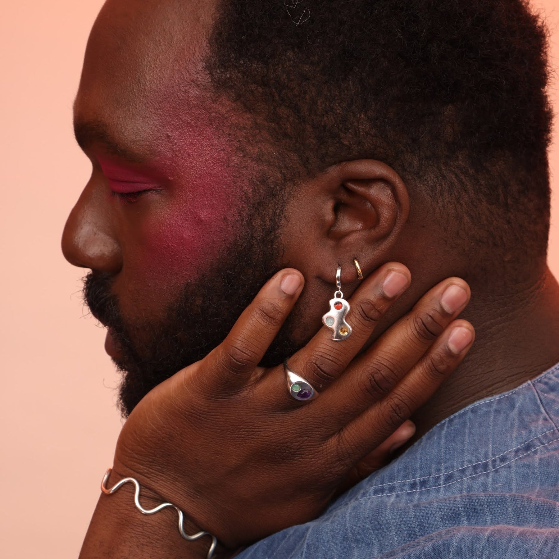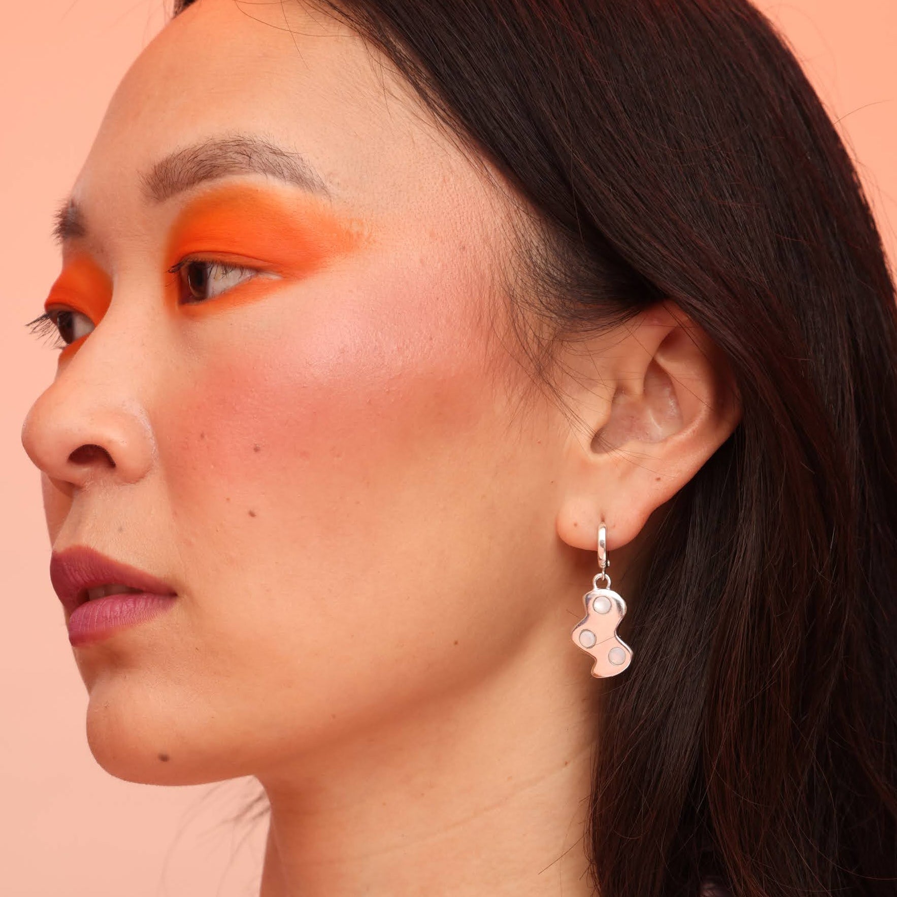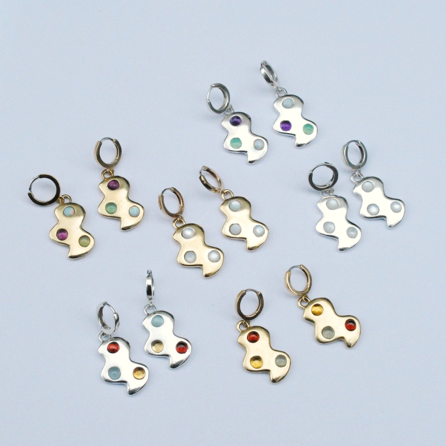 Designed to be worn solo as a statement piece or stacked with other earrings, their playful yet refined design adds a touch of artistry to any ensemble. These huggies are perfect for those who appreciate unique, handmade jewelry with a modern aesthetic.