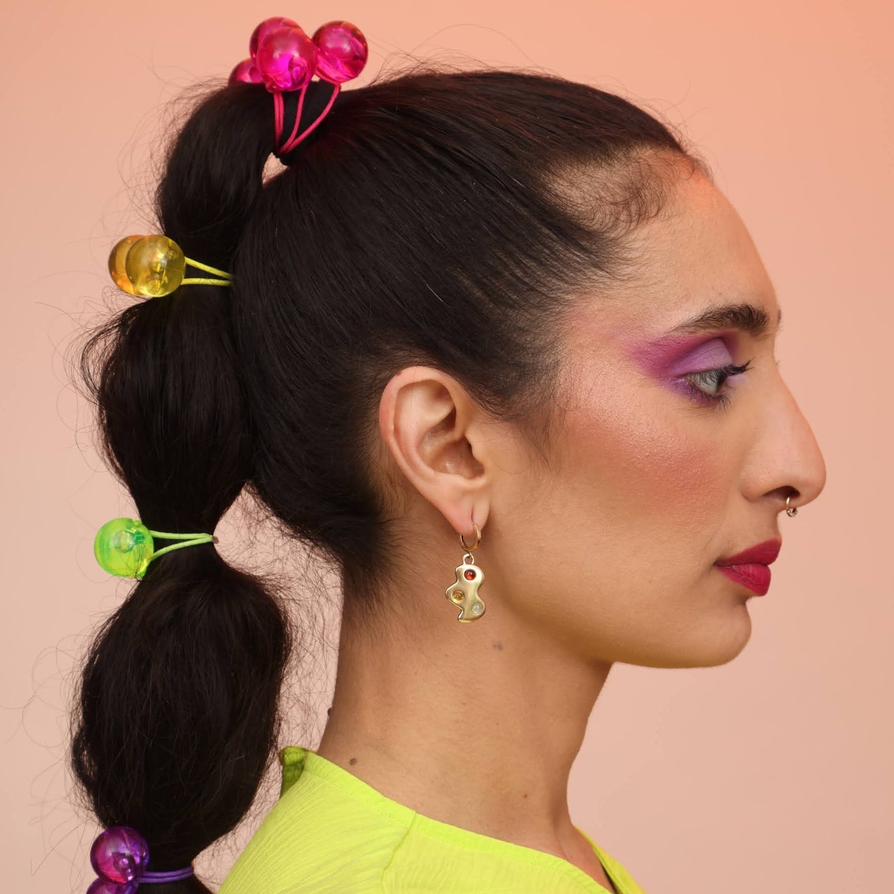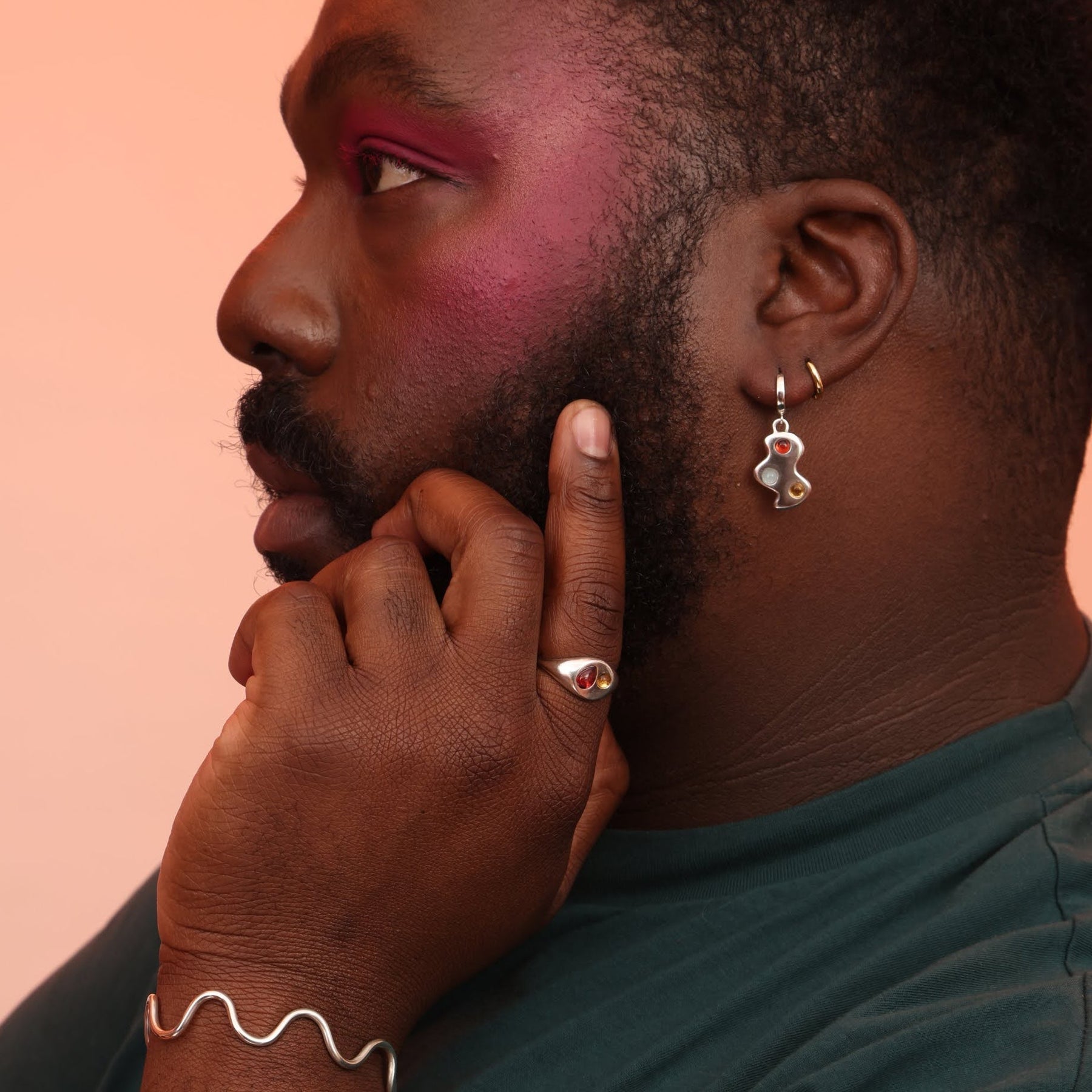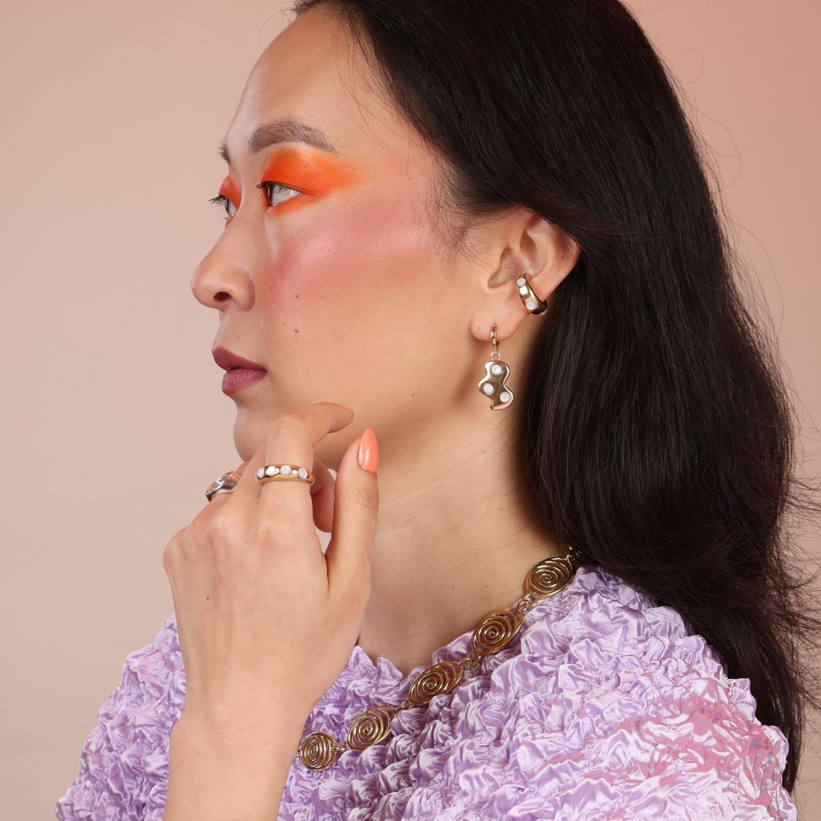 Designed to be worn solo as a statement piece or stacked with other earrings, their playful yet refined design adds a touch of artistry to any ensemble. These huggies are perfect for those who appreciate unique, handmade jewelry with a modern aesthetic.