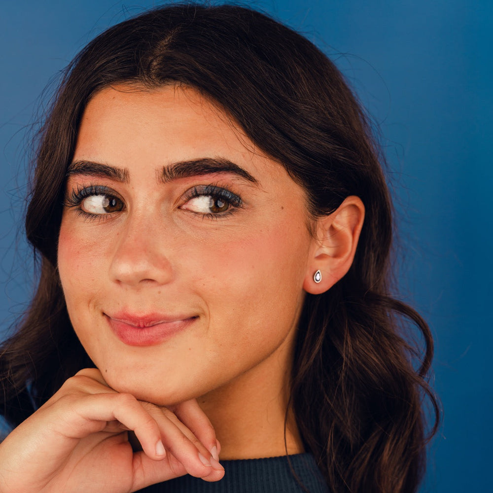 Leaf Marquise Flat Back Earrings - Three Inlaid Crystals