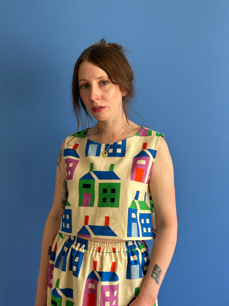8-Bit A-Frames Cropped Tulip Sleeve in Pretty Pastels