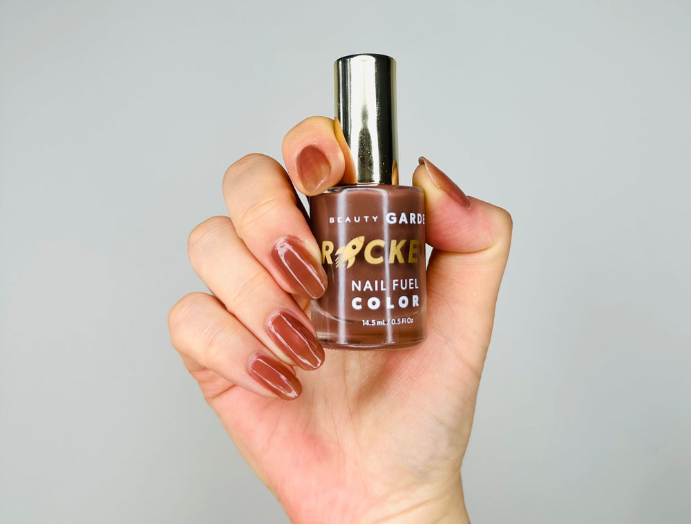 A soft and sheer shade that resides within the darker brown spectrum. This unique color builds beautifully, but retains its sheer quality even after two coats, giving your nails a hint of color. Especially stunning on darker skin tones.