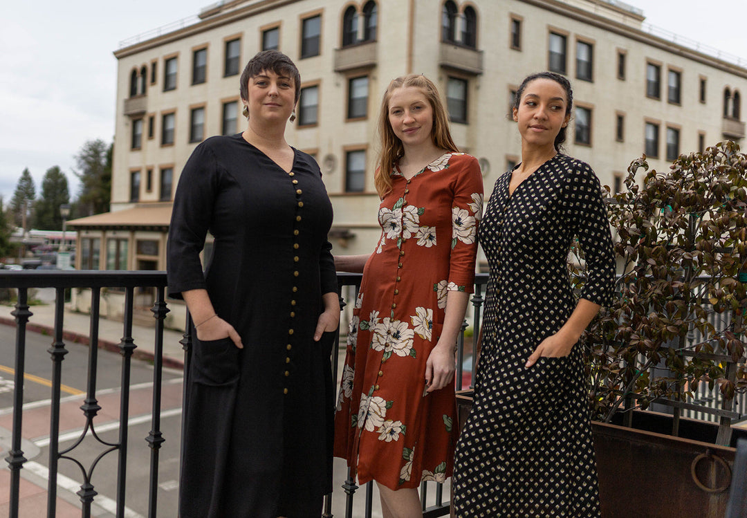Our long 3/4 sleeve Fiona Dress is a big favorite so we brought it back again in a rust colored rayon challis with giant floral print.