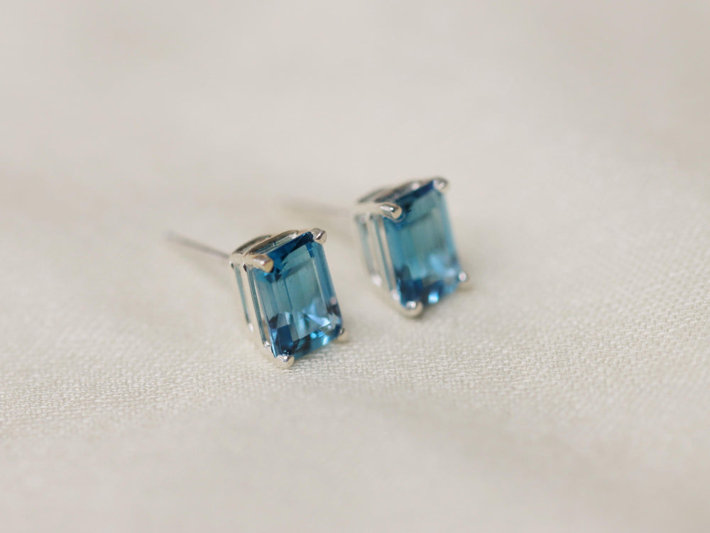 London blue topaz is a unique and deeply enchanting stone, one that completely mesmerizes me. This inky blue color is reminiscent of the mysterious deep ocean, and the facets on these earrings glimmer like breaking waves in the sun. Featured in a timeless setting, this gemstone is a beautiful gift to yourself or others.