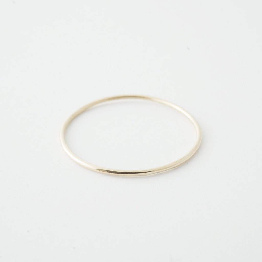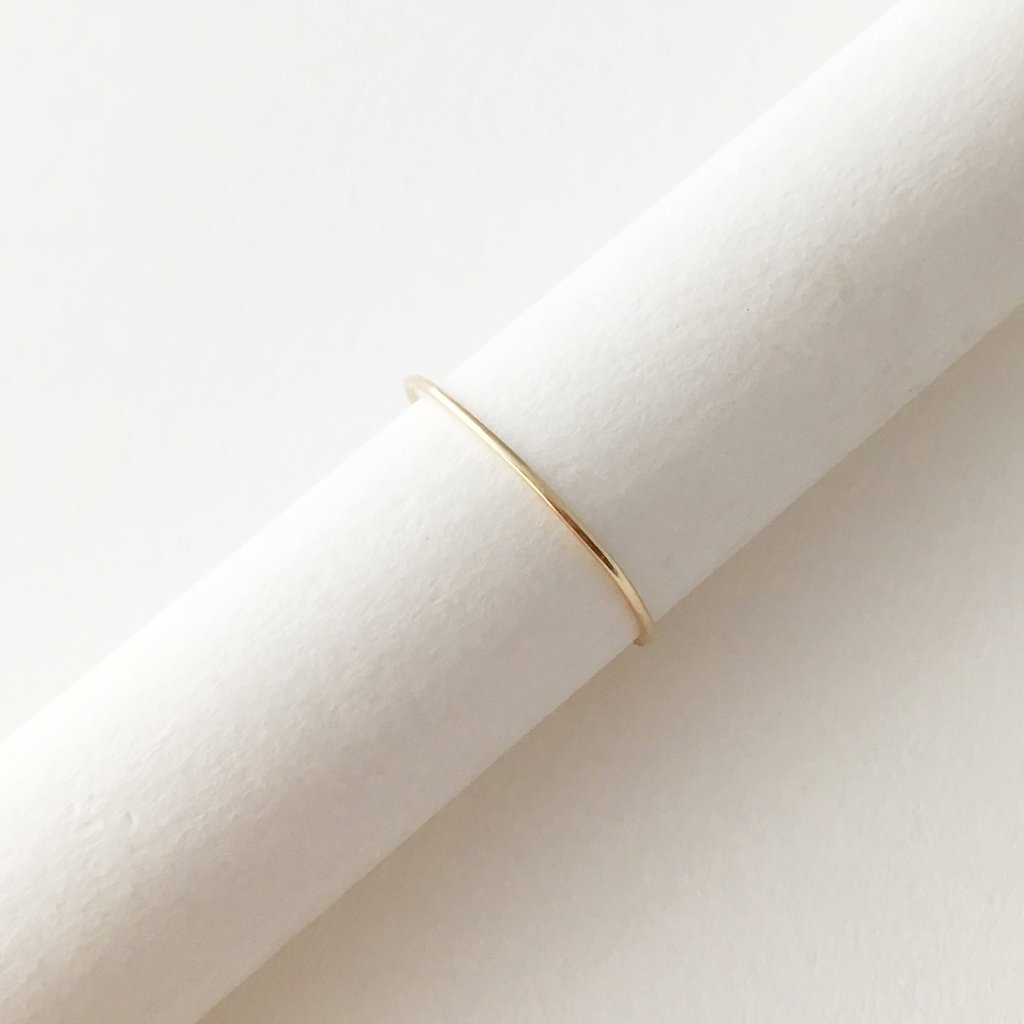 A single, skinny, classic ring in either solid 14k gold or 14k rose gold. This simple ring is equally gorgeous when worn alone as it is when stacked alongside your favorite rings. Measures .7 mm wide.