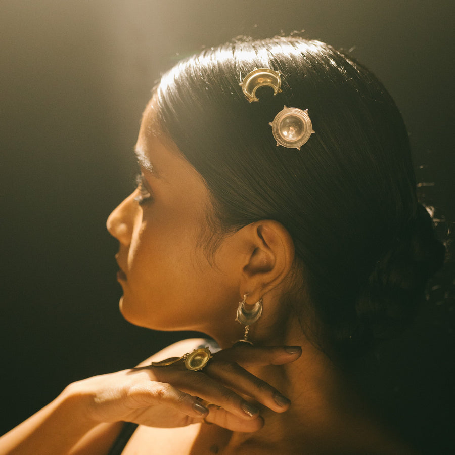 These hair clips are an ode to the traditional dance accessory, retrofitted for the modern jewelry lover. They make a statement, but are subtle enough to be worn on the daily. Stack a few sun hair clips together or play mix and match with the moon hair clips to make a statement with your pieces.