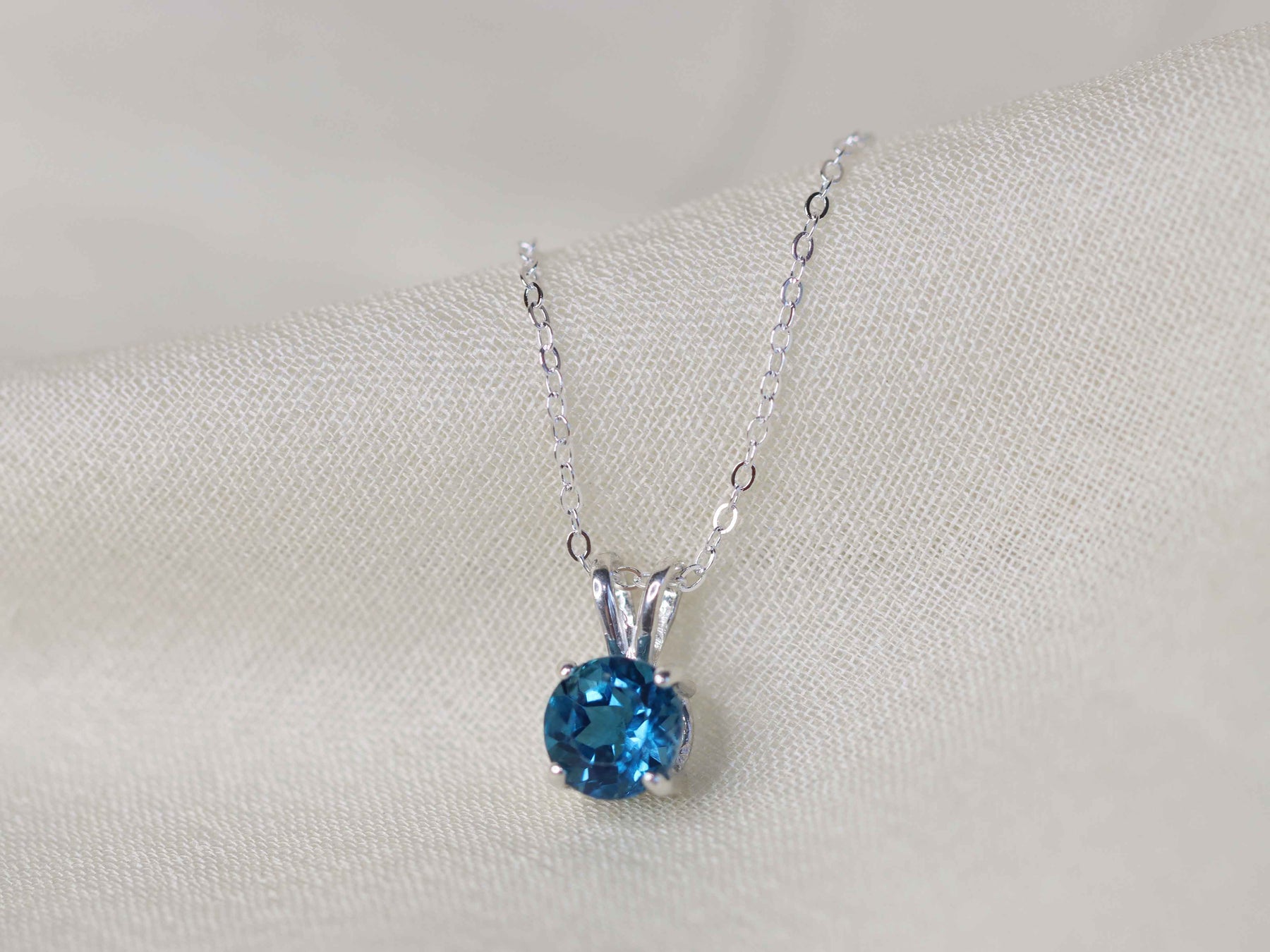 London blue topaz is a unique and deeply enchanting stone, one that completely mesmerizes me. This inky blue color is reminiscent of the mysterious deep ocean, and the facets on this necklace glimmer like breaking waves in the sun. Featured in a timeless setting, this gemstone is a beautiful gift to yourself or others.