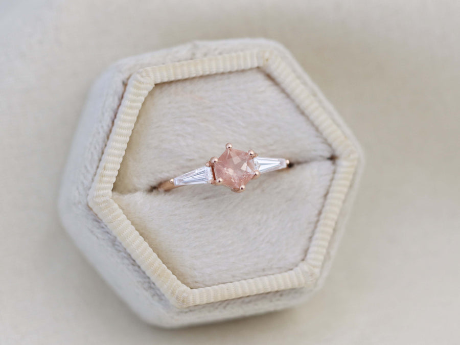 - 5mm hexagon cut faceted Oregon sunstone center stone