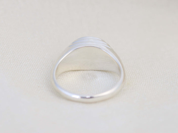 Like ripples on the surface of a pond, this sculptural ring highlights a faceted gemstone at it's center. This organic signet ring is substantial in weight and supremely comfortable to wear.